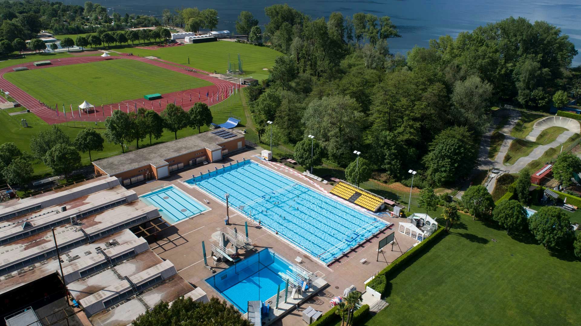 - Ein olympisches Schwimmbecken (50 m x 21 m), das geteilt werden kann;