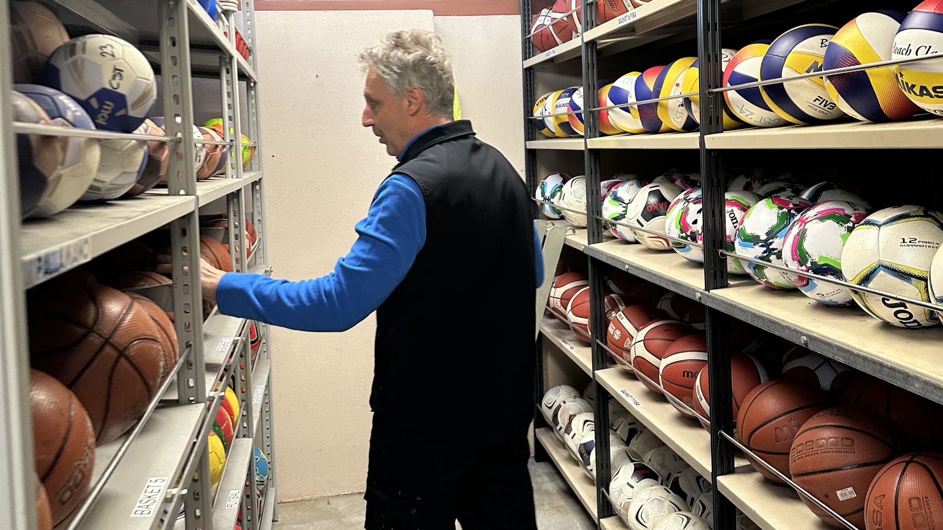 Seit Albertos erstem Arbeitstag beim CST am 2. November 1985 hat sich seine Arbeit stark verändert. «Zu Beginn war ich Hauswart und hatte andere Aufgaben», erzählt Alberto. «Mit der Zeit begannen mein Team und ich, uns auch um das Sportmaterial zu kümmern. Anfangs hatten wir eine kleine Auswahl an Sportausrüstung und das Lager war praktisch leer. Heute bräuchten wir sogar noch mehr Platz.»