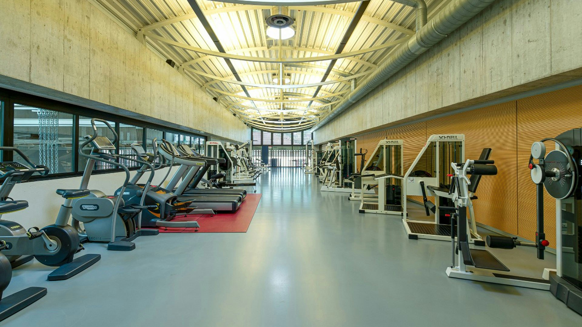 The weight room is intended for performance athletes. It is equipped with cardiovascular training machines and strength training equipment. A tartan track makes it possible to combine training with sprinting exercises in an indoor environment.