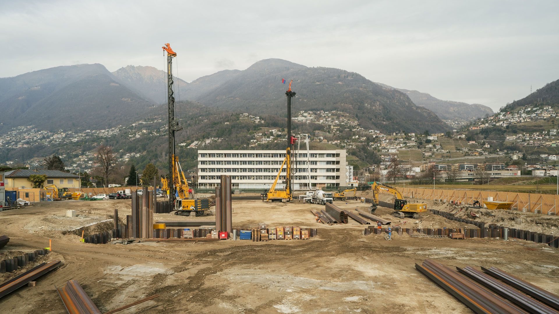 Le cahier des charges imposait qu’une surface suffisante reste disponible pendant toute la durée des travaux. La nouvelle piscine couverte est construite juste à côté des installations actuelles. Grâce à une planification rigoureuse, ces dernières peuvent être exploitées tout au long du chantier, et ce aussi bien pour la natation que pour le plongeon ou le ski acrobatique. Une cloison sépare actuellement la zone de travaux de la zone accessible au public. Le périmètre du chantier est réduit au strict minimum afin d’affecter le moins possible les activités habituelles.