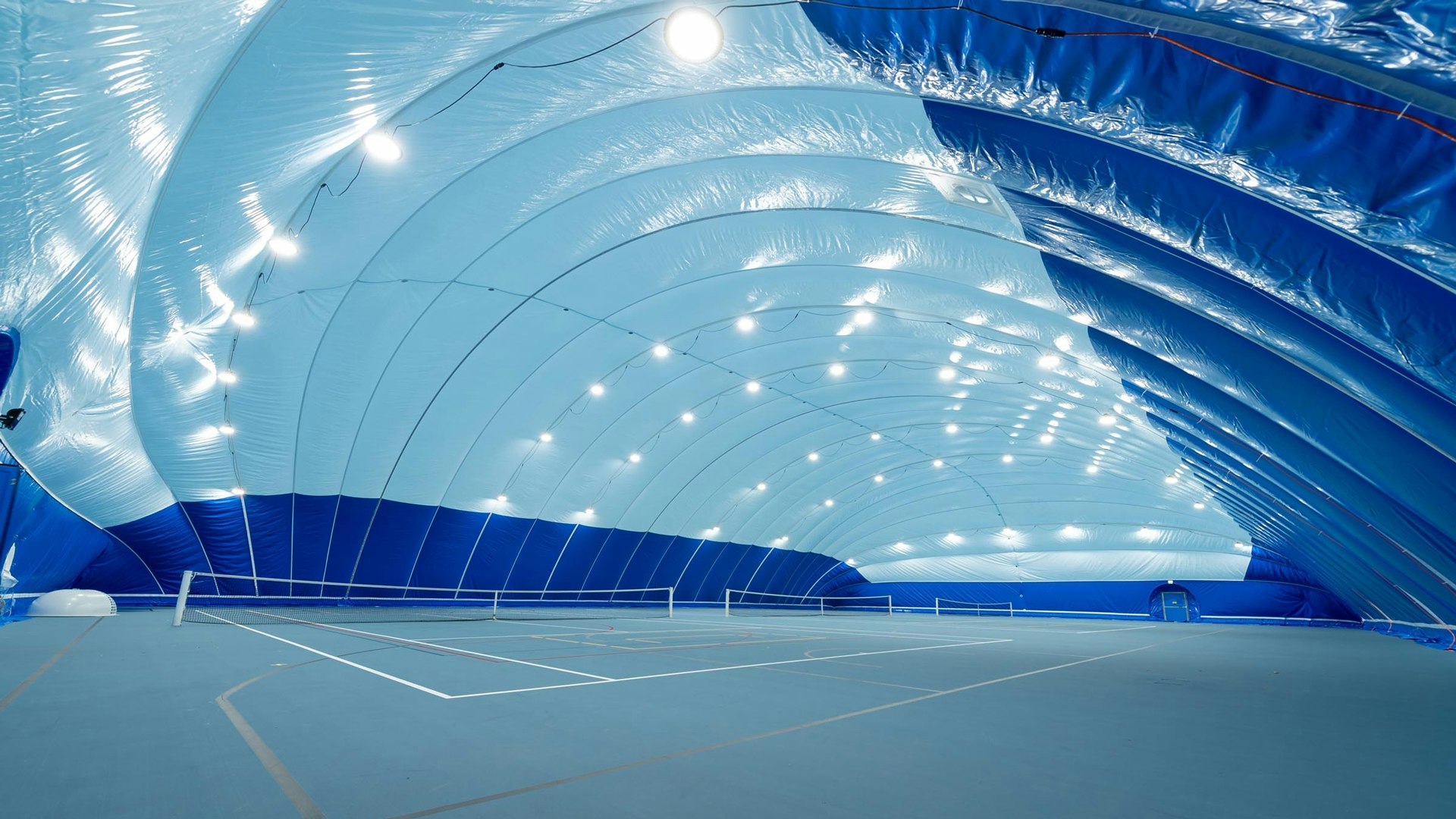 Pendant les mois d’hiver, trois courts de tennis sont couverts par une bulle pressostatique qui permet la pratique, en plus du tennis, de plusieurs autres disciplines sportives en salle.
