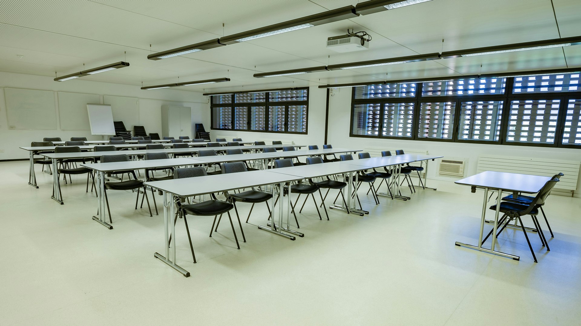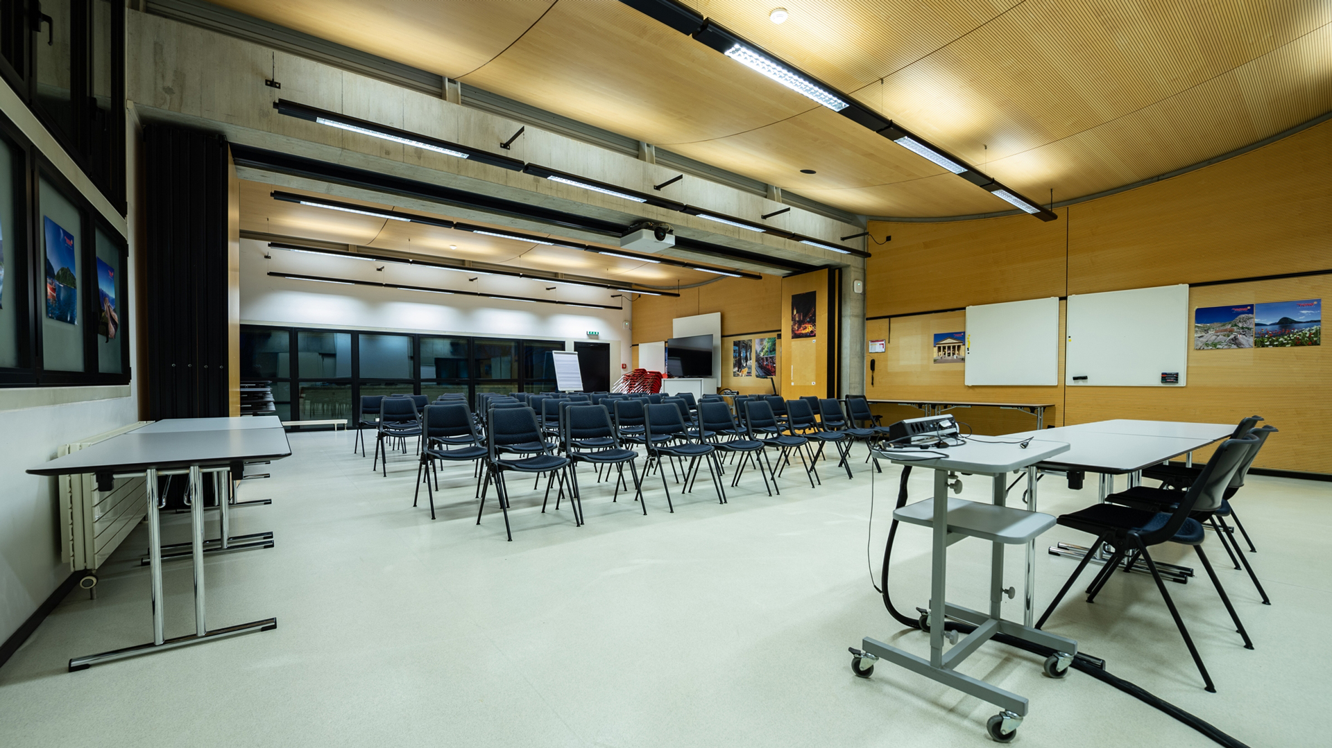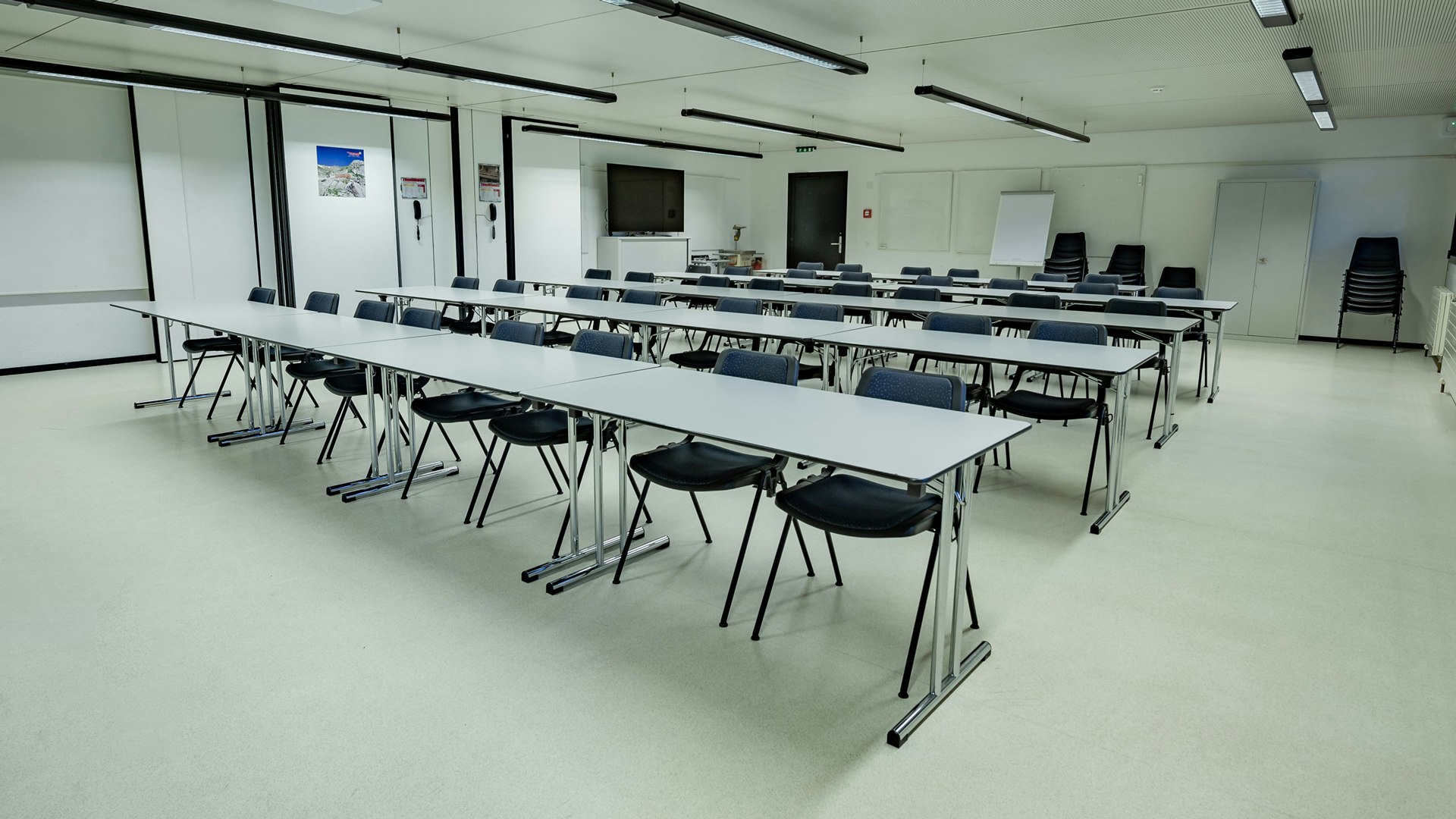 Quattro aule da 58m², 102m², 128m² e 138m² suddivisibili con pareti mobili.